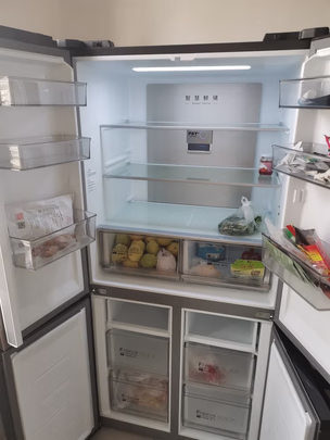美的这款冰箱又美观又大气,疫情期间冷冻必须大,我是从220升的小三门换的这个冰箱,感觉太爽了。容量也足够用了,双变频,噪音也小,几乎听不见,而且是风冷的不用除霜,冷冻强。很是满意,左右门有很细小的不平,准备过几天叫售后的过来调调,感受一下美的的售后