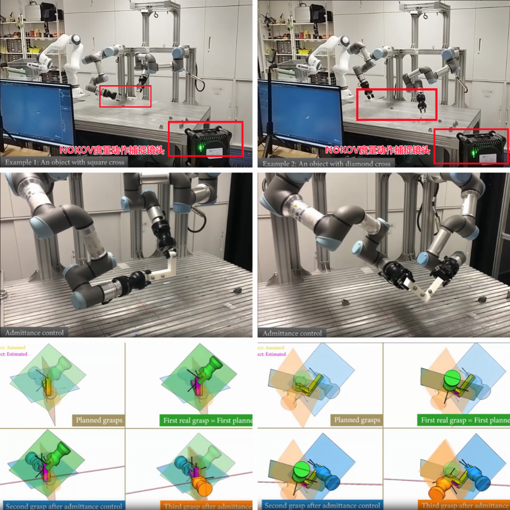 在该过程中,NOKOV度量动作捕捉系统用于记录每次抓取后物体的真实位姿变化。