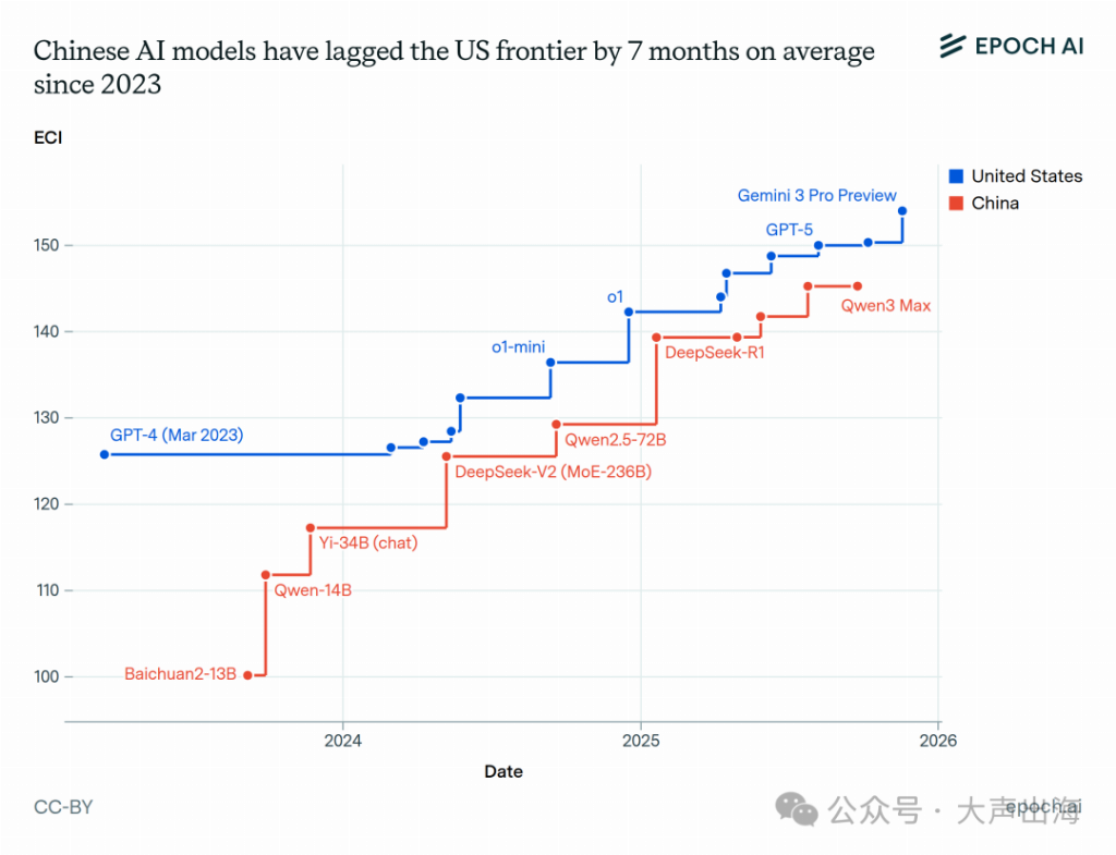 首先,我们要理解这7个月的本质。Epoch AI的图表说得很清楚,美国的领先是“连续、密集”的范式级创新,而我们是“跳跃式”的追赶。这导致了中美AI发展路径的根本不同:美国在闭源模型上不断冲击极限,而我们则通过开源模型,在工程化、应用层和生态建设上快速迭代。