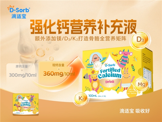 钙是儿童骨骼发育的重要营养素。滴适宝强化钙采用有机柠檬酸钙,对肠胃较为友好,搭配镁、维生素D3、维生素K2,形成“补充-促进-锁定”的营养支持闭环,帮助钙质更好地被身体利用。