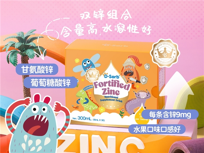 锌是儿童生长发育中重要的微量元素之一。滴适宝强化锌采用氨基酸螯合锌与葡萄糖酸锌的双重配方,每袋含锌元素9毫克,双重吸收路径有助于补锌效率。